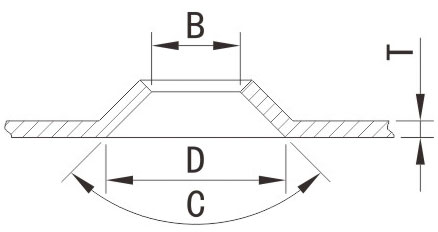 | 字號(hào) | B尺寸 | C尺寸 | D尺寸 | 深度 | 沖力(AL) | 沖力(MS) | 沖力(SS) |