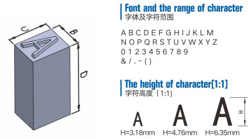 字號(hào)尺寸規(guī)定、字符深度、沖壓力(鋁、碳鋼板、不銹鋼)