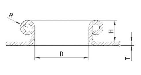 - 成形高度:H≤2T、成形寬度2H≤B≤12.8