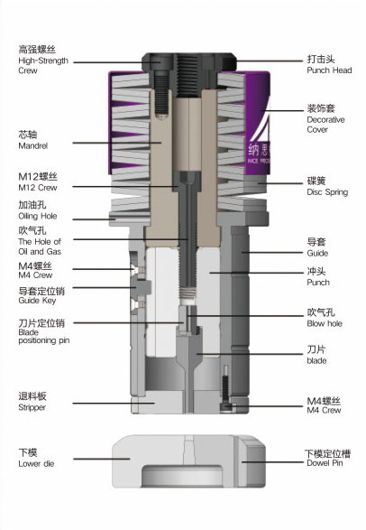 - 所有沖頭刃口均采用特種的高速工具鋼,全部經(jīng)真空熱處理,硬度HRC60°-63°