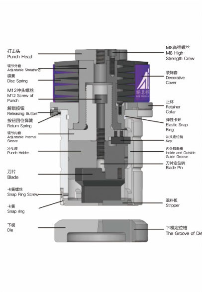- 退料板鎖定彈簧片采用優(yōu)質(zhì)彈簧鋼,不易折斷;退料板鎖緊螺釘特殊鋼定做,拆裝使用高性能六角扳手,不易滑牙