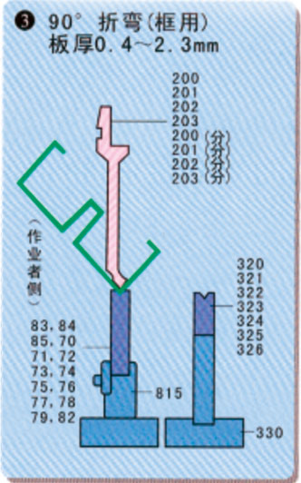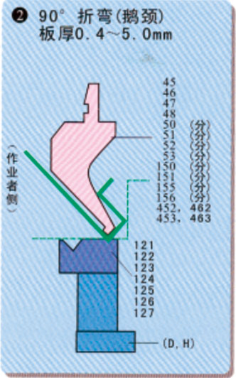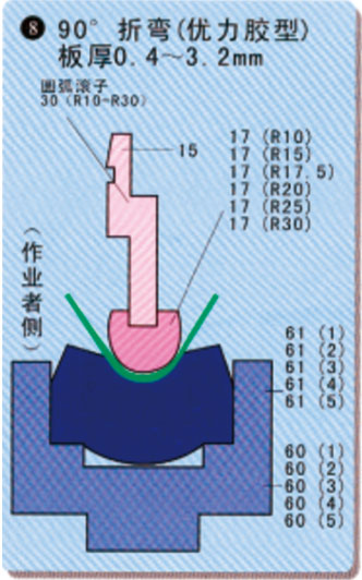 材料的板厚及折彎的內(nèi)側(cè)半徑?jīng)Q定后,請(qǐng)參閱下表。