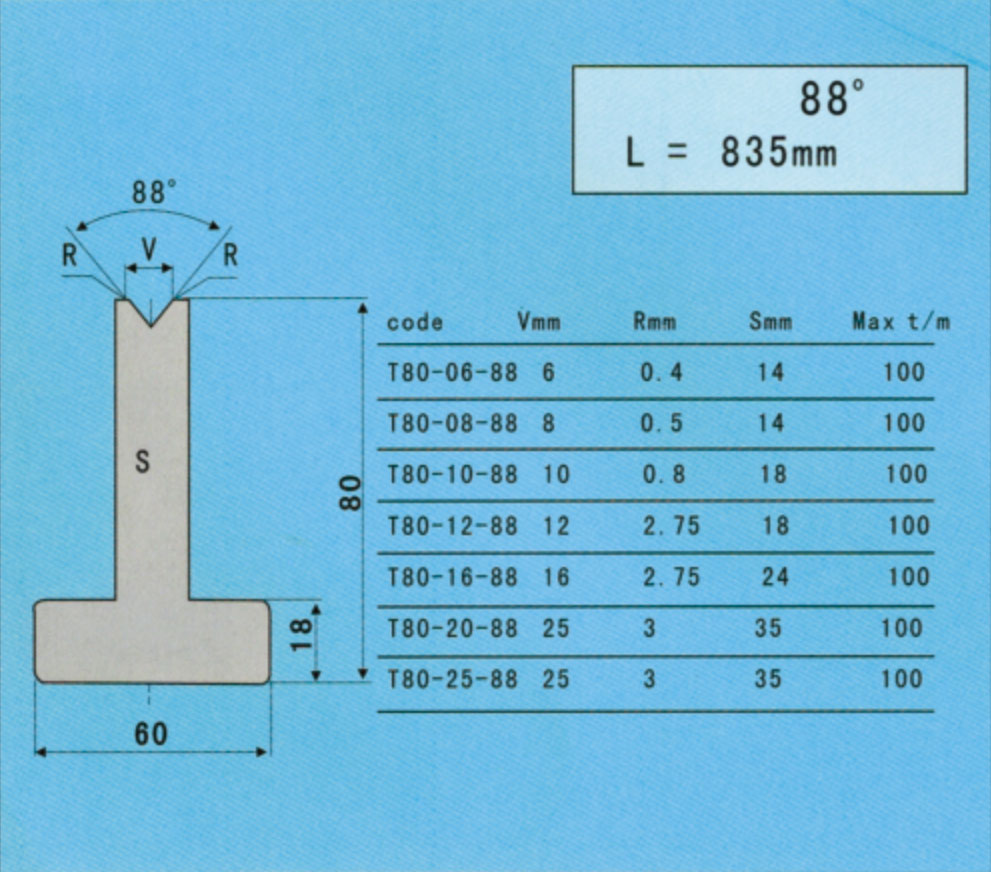 • 折彎時(shí)所使用的下模的V槽寬度(V)